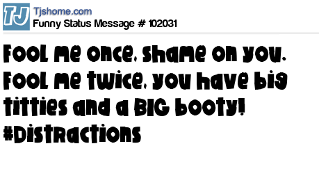 X is Fool me once, shame on you. Fool me twice, you have big titties and a BIG booty! #Distractions