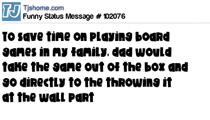 X To save time on playing board games in my family, dad would take the game out of the box and go directly to the throwing it at the wall part