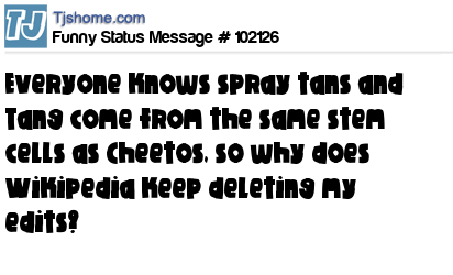 X is Everyone knows spray tans and Tang come from the same stem cells as Cheetos, so why does Wikipedia keep deleting my edits?