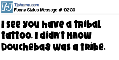 X I see you have a tribal tattoo, I didn't know Douchebag was a tribe.