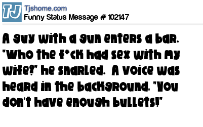 X  A guy with a gun enters a bar. "Who the f*ck had sex with my wife?" he snarled.  A voice was heard in the background, "You don't have enough bullets!"