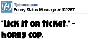 - # 115599 I'm dressing as a cop for Halloween and telling ladies to "lick it or ticket!!"