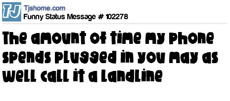 - # 123364 The amount of time my smartphone spends plugged in charging, you might as well want to call it a Landline !