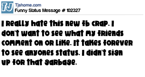 X I really hate this new fb crap. I don't want to see what my friends comment on or like. It takes forever to see anyones status. I didn't sign up for that garbage.