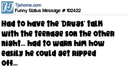 X Had to have the 'Drugs' talk with the teenage son the other night... had to warn him how easily he could get ripped off...