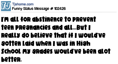 X I'm all for abstinence to prevent teen pregnancies and all...But I really do believe that if I would've gotten laid when I was in High School my grades would've been alot better.