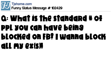 X Q: What is the standard # of ppl you can have being blocked on FB? I wanna block all my ex(s)!