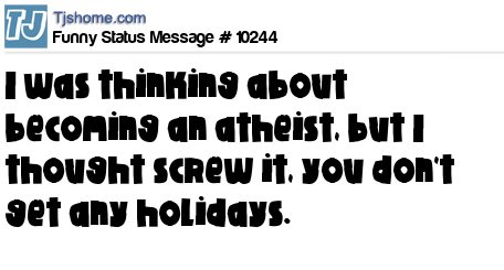 - # 162365 I once wanted to become an atheist, but I gave up - they have no holidays