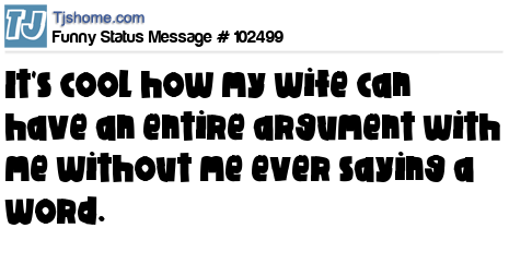 X says It's cool how my wife can have an entire argument with me without me ever saying a word.