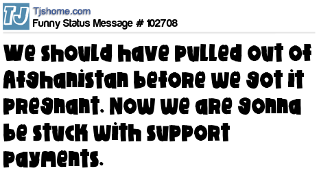 X says We should have pulled out of Afghanistan before we got it pregnant. Now we are gonna be stuck with support payments.