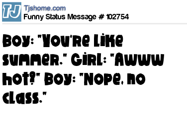 X is Boy: "You're like summer." Girl: "Awww hot?" Boy: "Nope, no class."