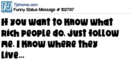 X says if you want to know what rich people do, just follow me. I know where they live...
