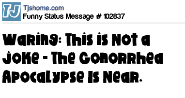 X  Waring: This is Not a joke - The Gonorrhea Apocalypse Is Near.