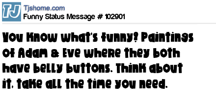 - # 73248 You know what's funny? Paintings of Adam & Eve where they both have belly buttons. Think about it, take as much time as you need.