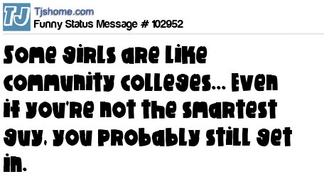 X is Some girls are like community colleges... Even if you're not the smartest guy, you probably still get in.