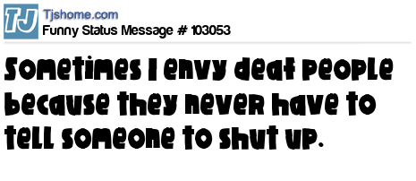 X says Sometimes I envy deaf people because they never have to tell someone to shut up.