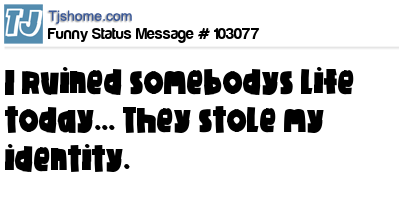 - # 209305 I didn't even realize how broke I was until someone stole my identity and it ruined their life.