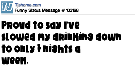 X is Proud to say I've slowed my drinking down to only 7 nights a week.