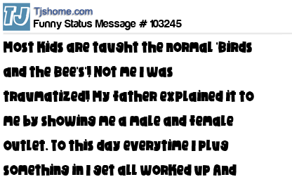 X is Most kids are taught the normal 'Birds and the Bee's'! Not me I was traumatized! My father explained it to me by showing me a male and female outlet. To this day everytime I plug something in I get all worked up And dont let even show me an extension cord