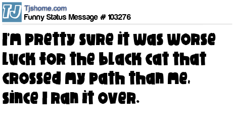 X says I'm pretty sure it was worse luck for the black cat that crossed my path than me, since I ran it over.