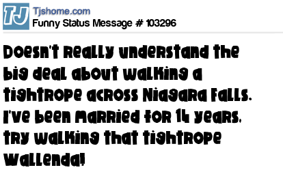 X doesn't really understand the big deal about walking a tightrope across Niagara Falls. I've been married for 14 years, try walking that tightrope Wallenda!