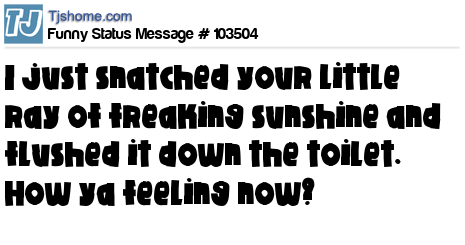 X I just snatched your little ray of freaking sunshine and flushed it down the toilet. How ya feeling now?