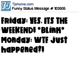 X Friday: YES, ITS THE WEEKEND! *Blink* Monday: WTF just happened?!