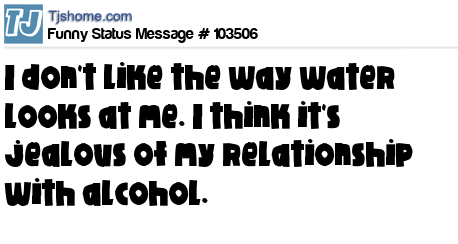 X I don't like the way water looks at me. I think it's jealous of my relationship with alcohol.