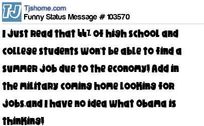 X is I just read that 44% of high school and college students won't be able to find a summer job due to the economy! Add in the military coming home looking for jobs,and I have no idea what Obama is thinking!
