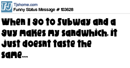 X When I go to Subway and a guy makes my sandwhich, it just doesnt taste the same...
