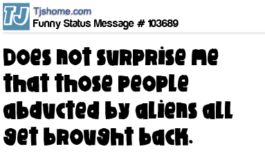 X Does not surprise me that those people abducted by aliens all get brought back.