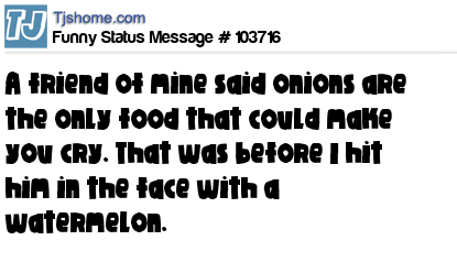 - # 79590 A friend of mine said onions are the only food that can make you cry..that was before I hit him in the face with a watermelon
