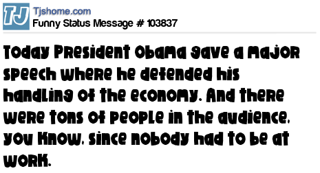 X is Today President Obama gave a major speech where he defended his handling of the economy. And there were tons of people in the audience, you know, since nobody had to be at work.
