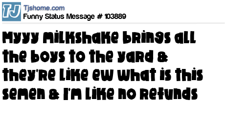 - # 91 "wondering what flavor milkshake ""brings all the boys to the yard"""