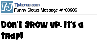 - # 98570 advises all the young people, "Do not grow up; it's a trap!!"