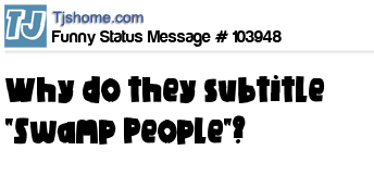- # 90716 i'd be willin to bet not one of those swamp people EVER thought they'd have their own show