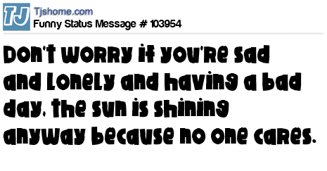 X  Don't worry if you're sad and lonely and having a bad day, the sun is shining anyway because no one cares.