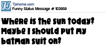 X says Where is the sun today? Maybe I should put my batman suit on?