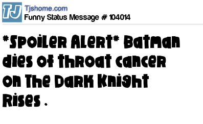 X *Spoiler Alert* Batman dies of throat cancer on The Dark Knight Rises .