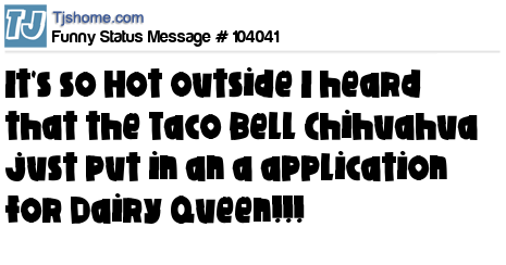 X is It's so Hot outside I heard that the Taco Bell Chihuahua just put in an a application for Dairy Queen!!!