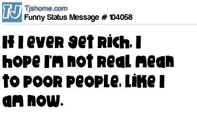 - # 152058 If I ever get real rich, I hope I'm not mean to poor people, like I am now.