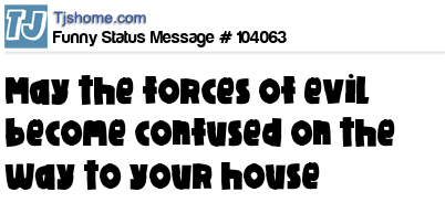 X says May the forces of evil become confused on the way to your house
