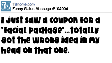 X says I just saw a coupon for a "facial package"...totally got the wrong idea in my head on that one.