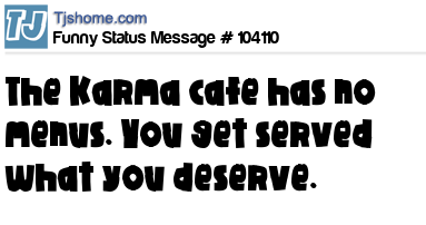 - # 124952 At the Karma Cafe, there are no menus. You get served what you deserve.