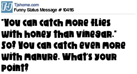 - # 122541 They told me I can catch more flies with honey than with vingar. I said "I can catch even more with manure, whats the point?"