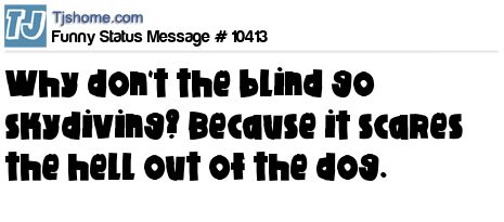 - # 74855 Why don't blind people go skydiving? Because it scares the hell out of their dog.