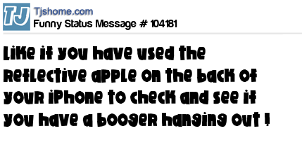 X Like if you have used the reflective apple on the back of your iPhone to check and see if you have a booger hanging out !