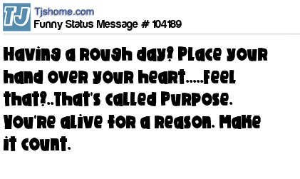 - # 128783 Having a rough morning? Place your hand over your heart. Feel that? That's called purpose. You're alive for a reason. Don't give up.