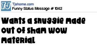 - # 17355 Just got out of the shower and dried off with a Sham Wow! Think I'll slip into a Snuggie and watch some infomercials.