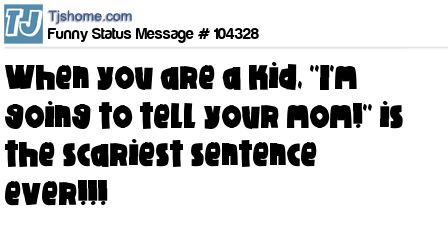 X is When you are a kid, ''I'm going to tell your mom!'' is the scariest sentence ever!!!